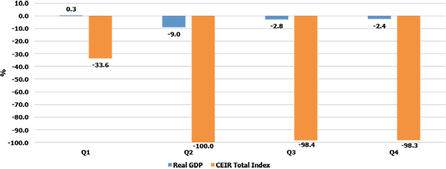 Figure 1: Real GDP vs. CEIR Total Index, 2020 Q1-Q4, Year-over-Year % Change